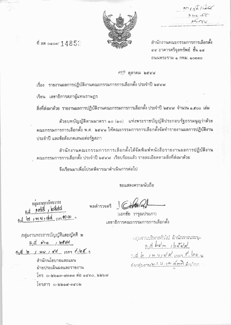 รับทราบรายงานผลการปฏิบัติงานคณะกรรมการการเลือกตั้ง ประจำปี ๒๕๔๗ |