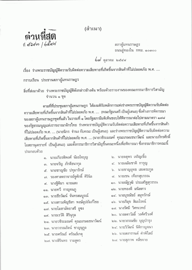 • ร่างพระราชบัญญัติความรับผิดต่อความเสียหายที่เกิดขึ้นจากสินค้าที่ไม่ปลอดภัย พ.ศ. ...