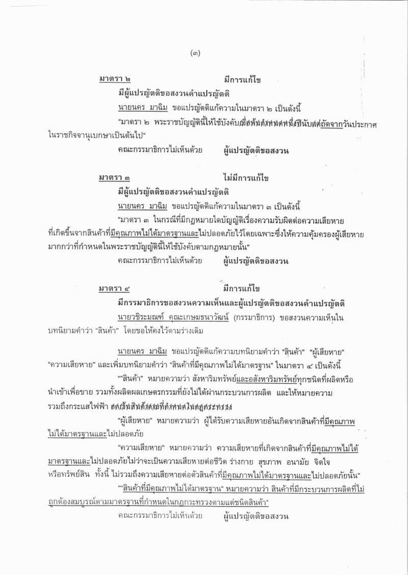 ร่างพระราชบัญญัติความรับผิดต่อความเสียหายที่เกิดขึ้นจากสินค้าที่ไม่ปลอดภัย พ.ศ. .... |