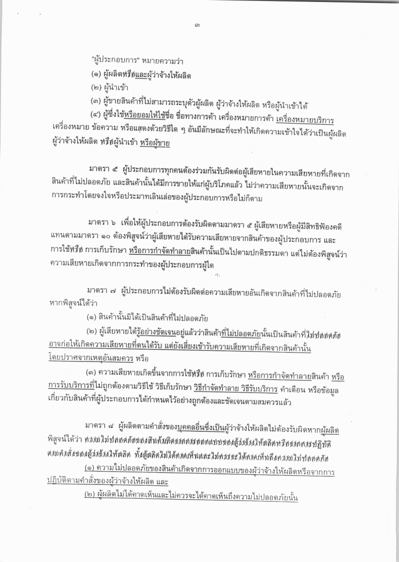 ชื่อเอกสาร :   ร่างพระราชบัญญัติความรับผิดต่อความเสียหายที่เกิดขึ้นจากสินค้าที่ไม่ปลอดภัย พ.ศ. ....
