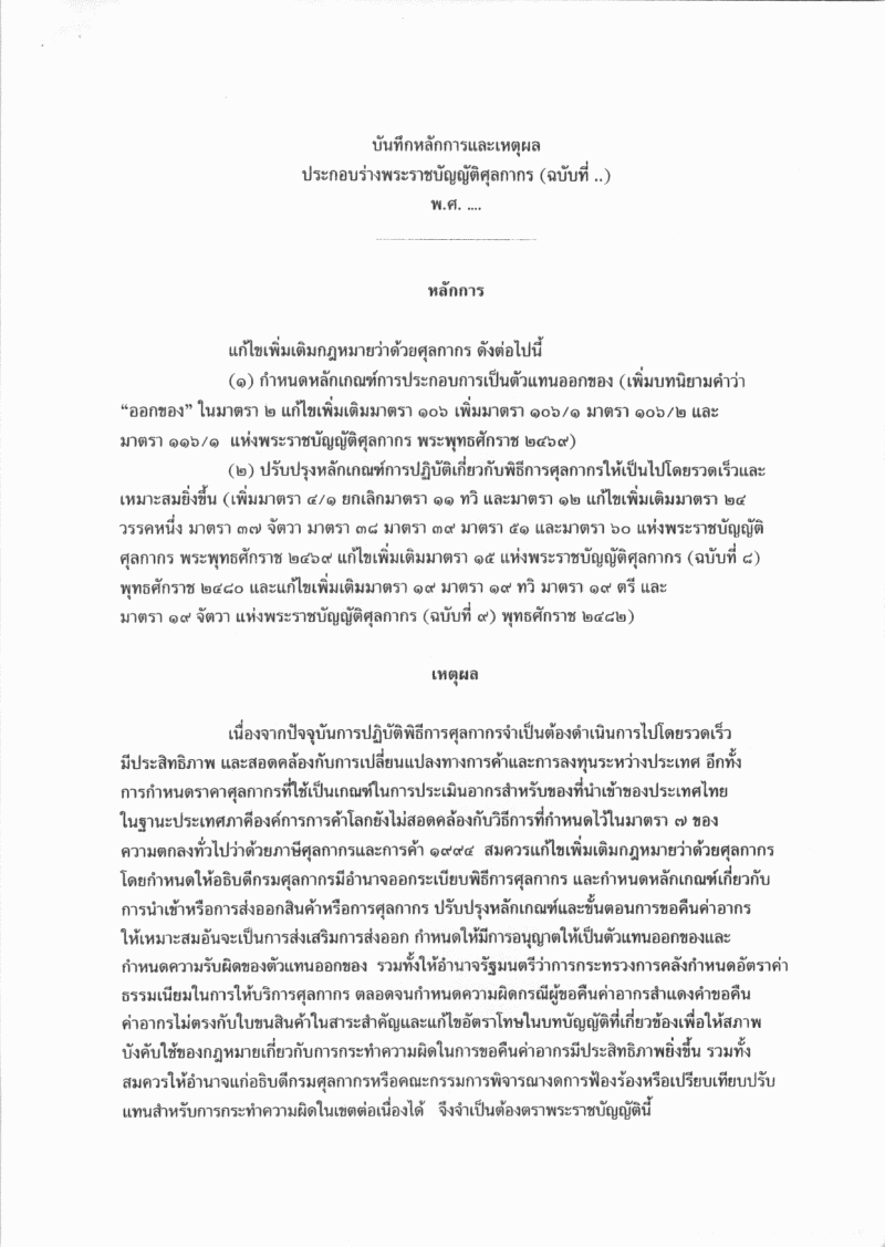 • ร่างพระราชบัญญัติศุลกากร (ฉบับที่ ..) พ.ศ. .....