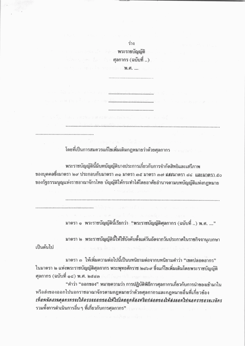 ชื่อเอกสาร :   ร่างพระราชบัญญัติศุลกากร (ฉบับที่ ..) พ.ศ. .....