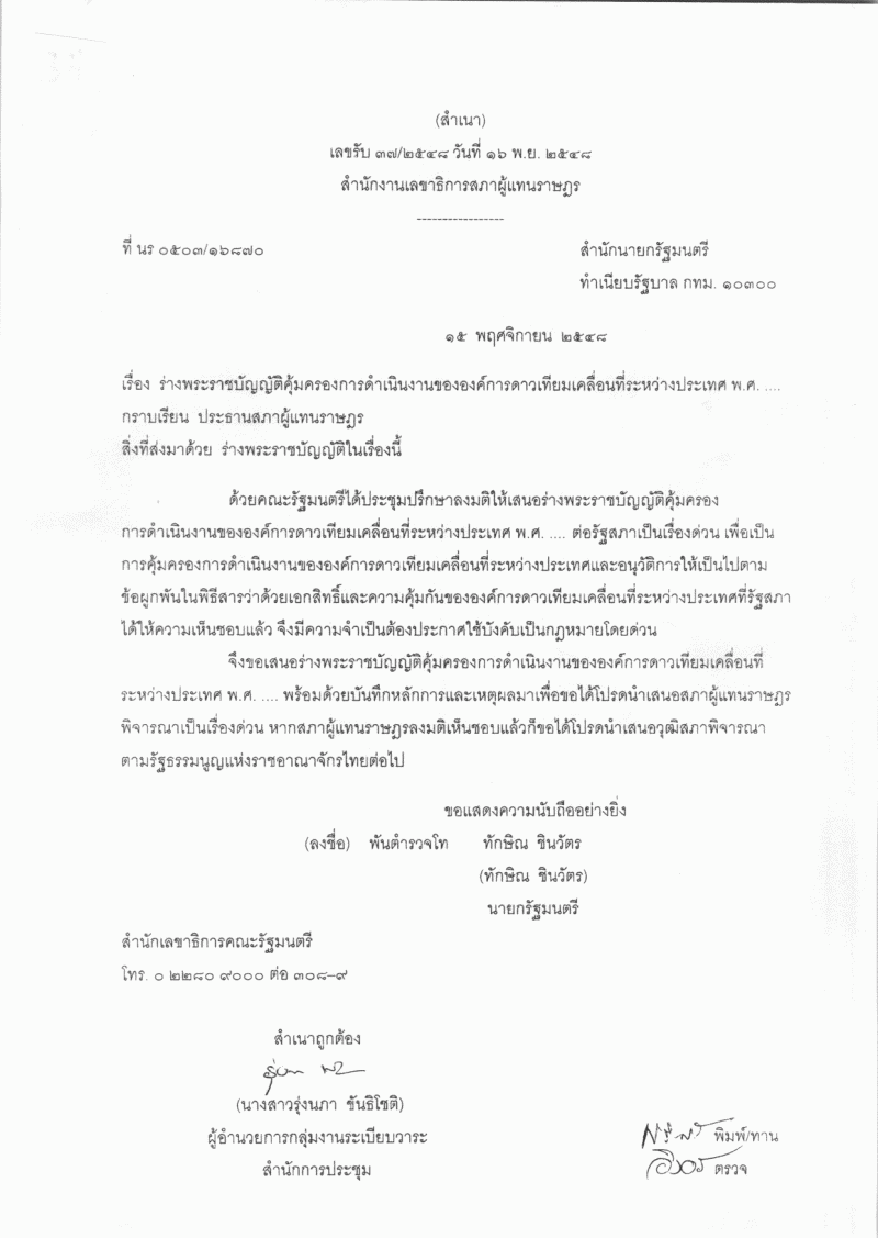 ชื่อเอกสาร :   ร่างพระราชบัญญัติคุ้มครองการดำเนินงานขององค์การดาวเทียมเคลื่อนที่ระหว่างประเทศ พ.ศ. ....