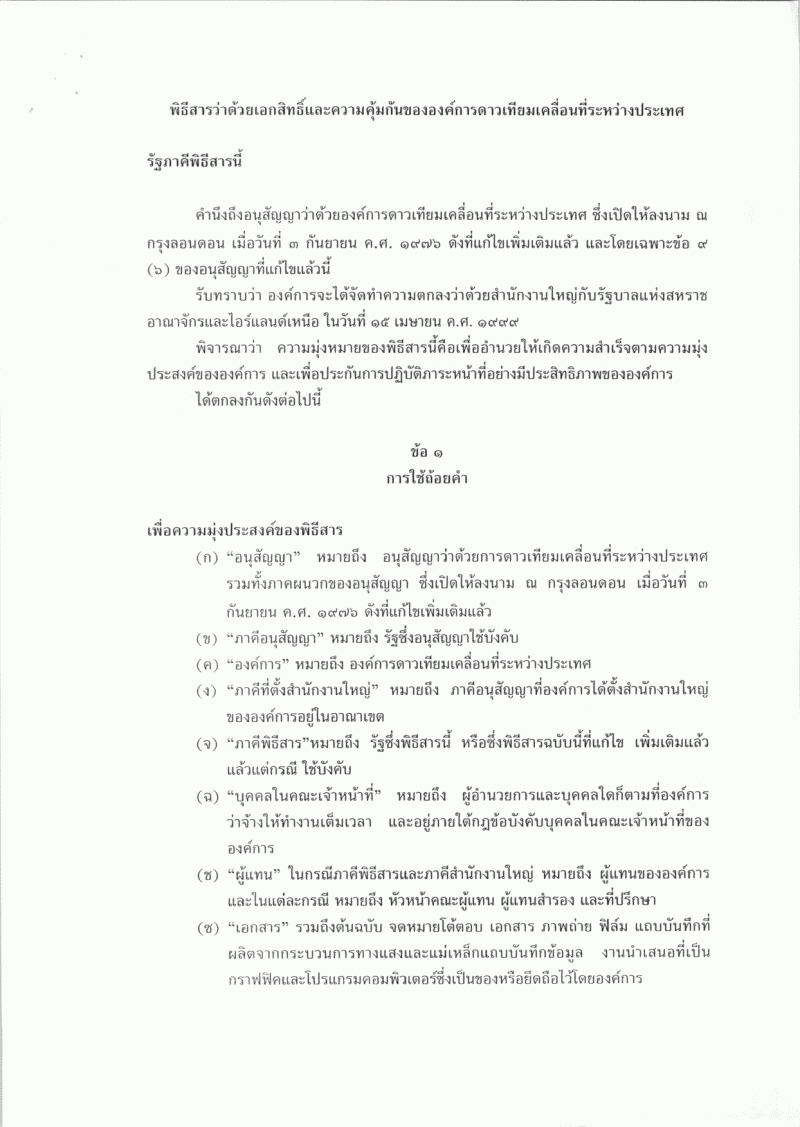ร่างพระราชบัญญัติคุ้มครองการดำเนินงานขององค์การดาวเทียมเคลื่อนที่ระหว่างประเทศ พ.ศ. .... |