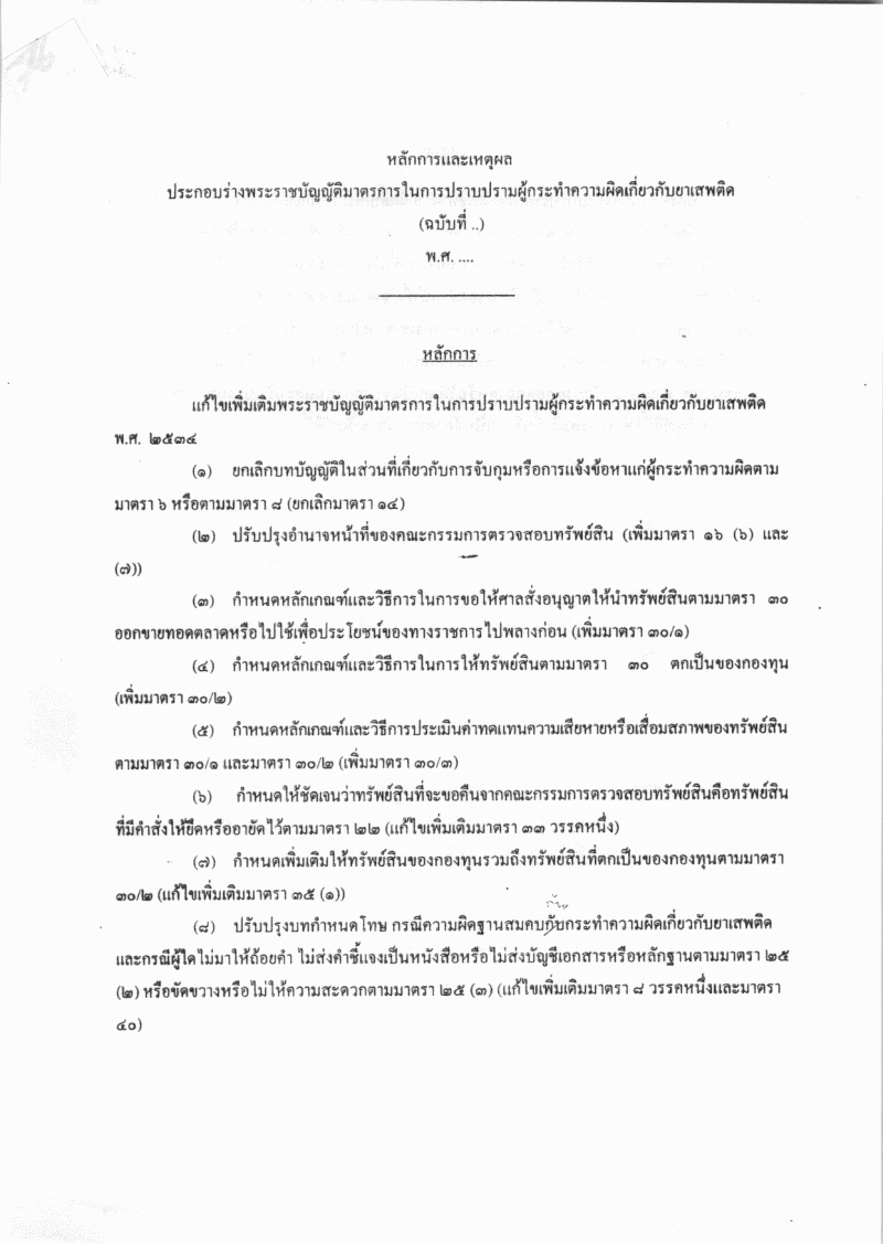 • ร่างพระราชบัญญัติมาตรการนการปราบปรามผู้กระทำความผิดเกี่ยวกับยาเสพติด (ฉบับที่ ..) พ.ศ. ....