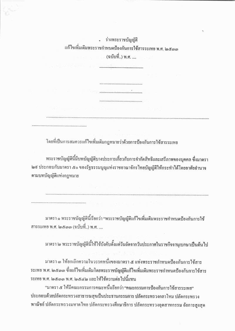 • ร่างพระราชบัญญัติแก้ไขเพิ่มเติมพระราชกำหนดป้องกันการใช้สารระเหย พ.ศ. ๒๕๓๓ (ฉบับที่ ..) พ.ศ. ....