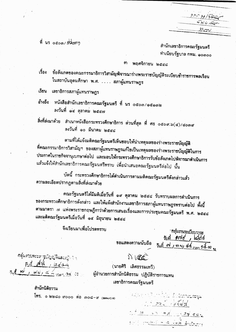 • ร่างพระราชบัญญัติระเบียบข้าราชการพลเรือนในสถาบันอุดมศึกษา พ.ศ. ....