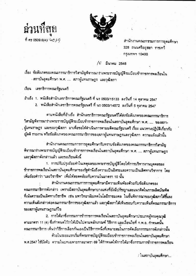 • ร่างพระราชบัญญัติระเบียบข้าราชการพลเรือนในสถาบันอุดมศึกษา พ.ศ. ....
