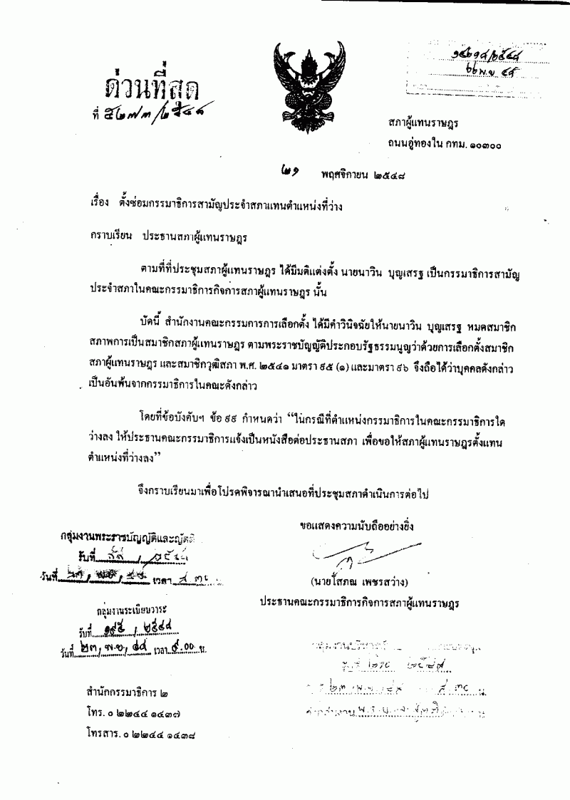 ชื่อเอกสาร : ตั้งซ่อมกรรมาธิการสามัญประจำสภา ในคณะกรรมาธิการกิจการสภาผู้แทนราษฎร
