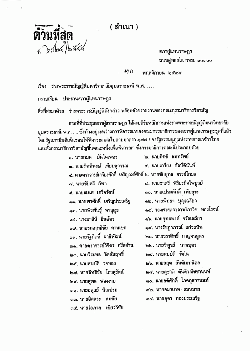 ร่างพระราชบัญญัตมหาวิทยาลัยอุบลราชธานี พ.ศ. ....