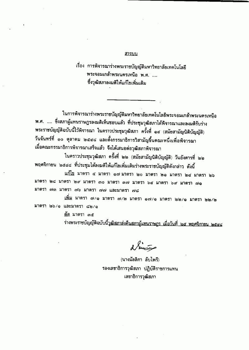 ชื่อเอกสาร :   ร่างพระราชบัญญัตมหาวิทยาลัยเทคโนโลยีพระจอมเกล้าพระนครเหนือ