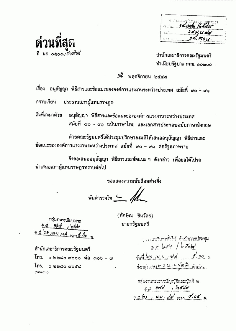 รับทราบอนุสัญญา พิธีสารและข้อแนะขององค์การแรงงานระหว่างประเทศ |