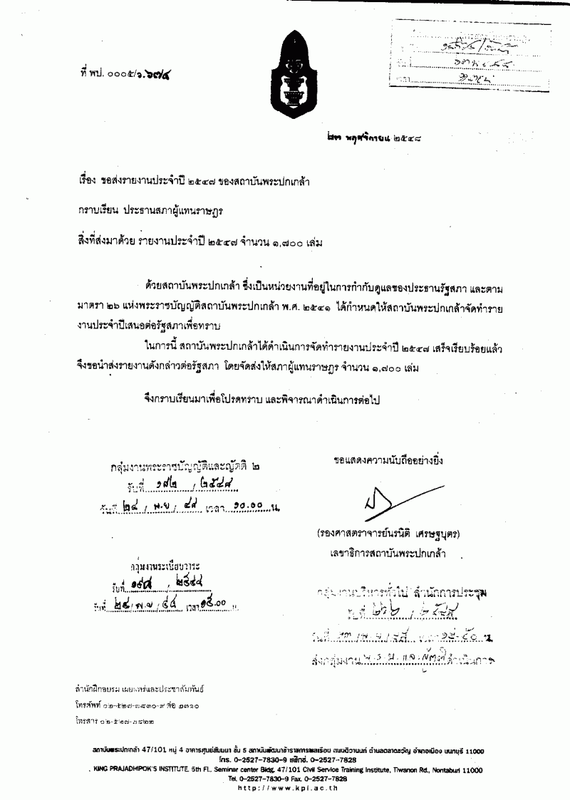 ชื่อเอกสาร : รับทราบรายงานประจำปี 2547 ของสถาบันพระปกเกล้า