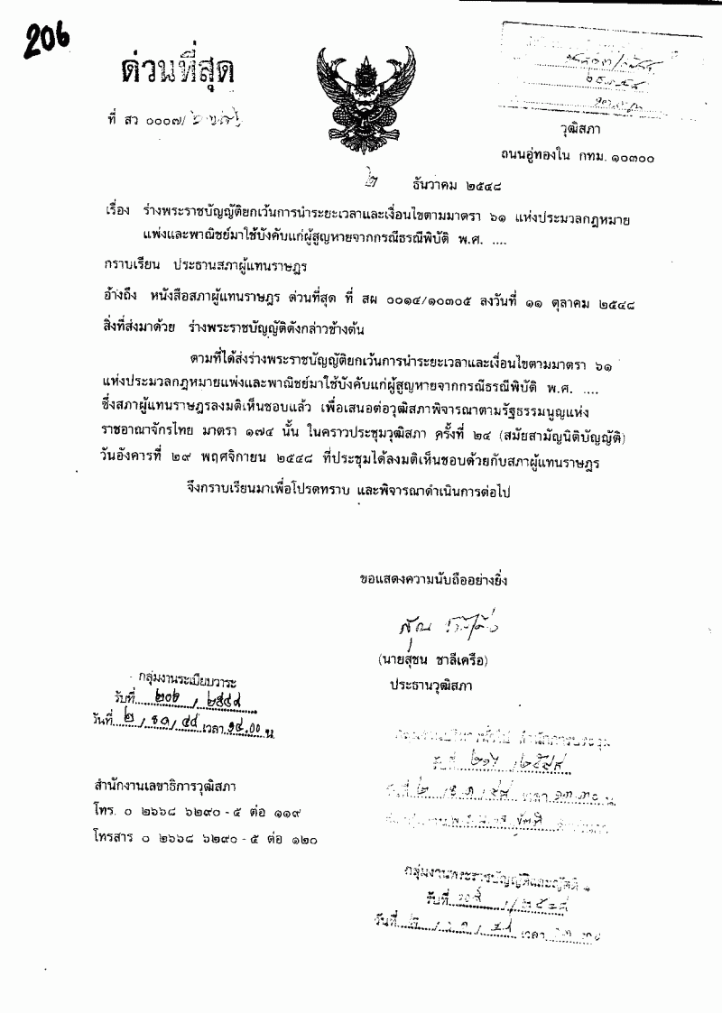 ชื่อเอกสาร : ร่างพระราชบัญญัติยกเว้นการนำระยะเวลาและเงื่อนไข