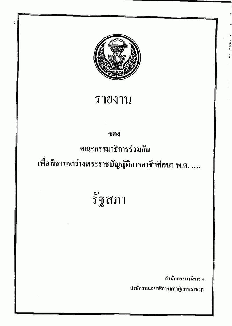 ร่างพระราชบัญญัติการอาชีวศึกษา พ.ศ. .... ซึ่งคณะกรรมาธิการร่วมกันพิจารณาเสร็จแล้ว