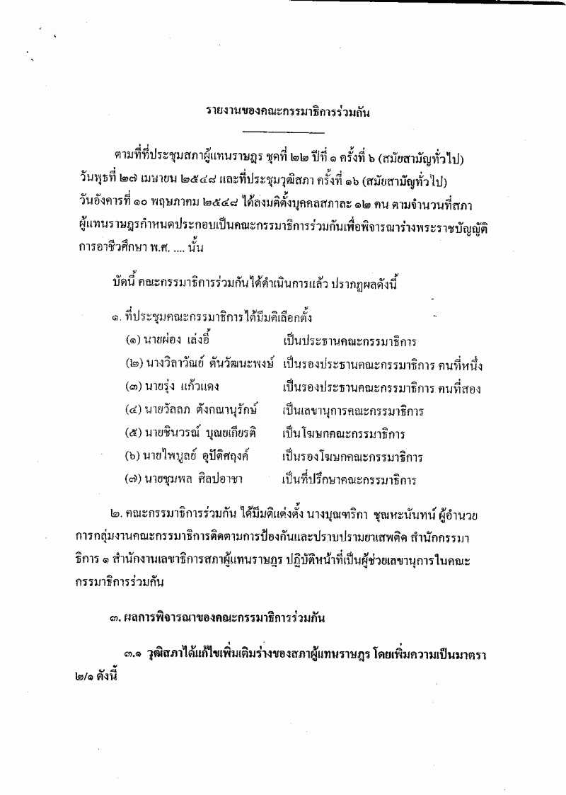 ระเบียบวาระการประชุมสภาผู้แทนราษฎร > ชุดที่ 22 > ปีที่ 1 > สมัยสามัญนิติบัญญัติ > ครั้งที่ 34 > (4) เรื่องที่คณะกรรมาธิการพิจารณาเสร็จแล้ว