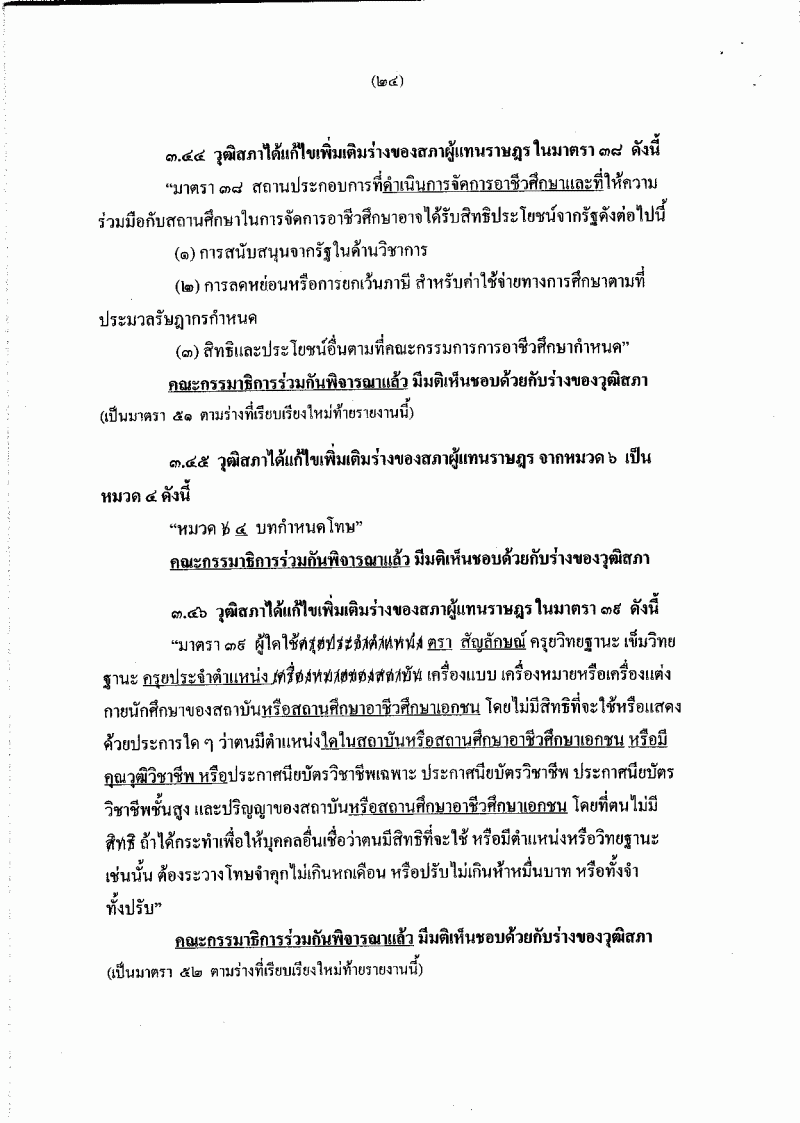 ร่างพระราชบัญญัติการอาชีวศึกษา พ.ศ. .... ซึ่งคณะกรรมาธิการร่วมกันพิจารณาเสร็จแล้ว