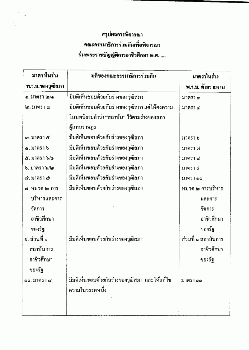 ร่างพระราชบัญญัติการอาชีวศึกษา พ.ศ. .... ซึ่งคณะกรรมาธิการร่วมกันพิจารณาเสร็จแล้ว
