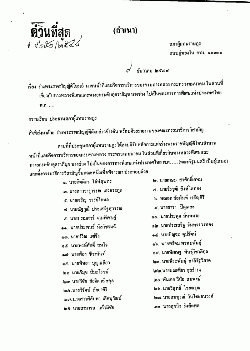 • ร่างพระราชบัญญัติโอนอำนารจหน้าที่และกิจการบริหารของกรมทางหลวง
