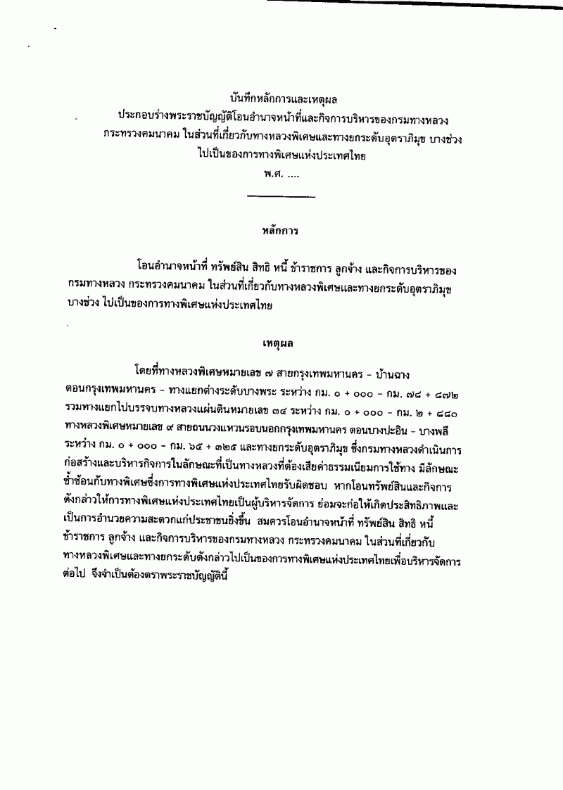 • ร่างพระราชบัญญัติโอนอำนารจหน้าที่และกิจการบริหารของกรมทางหลวง