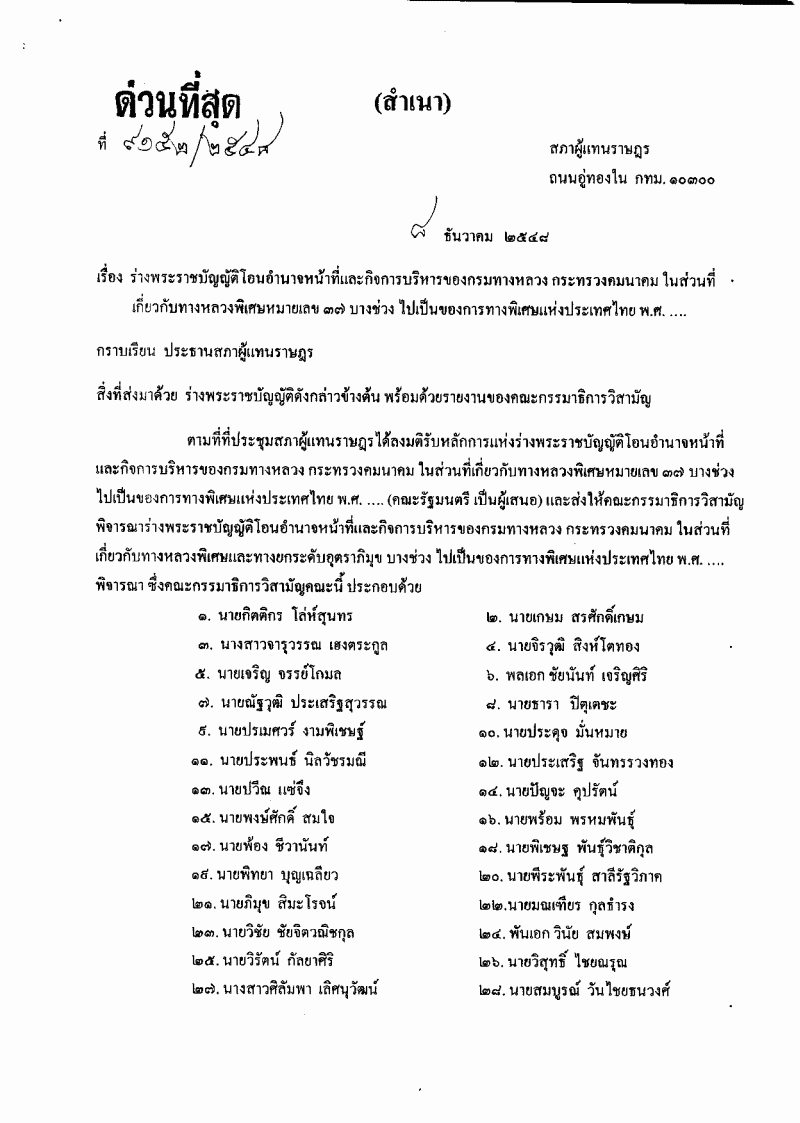 • ร่างพระราชบัญญัติโอนอำนาจหน้าที่และกิจการบริหารของกรมทางหลวง กระทรวงคมนาคมในส่วนที่เกี่ยวข้องกับทางหลวงพิเศษหมายเลข 37