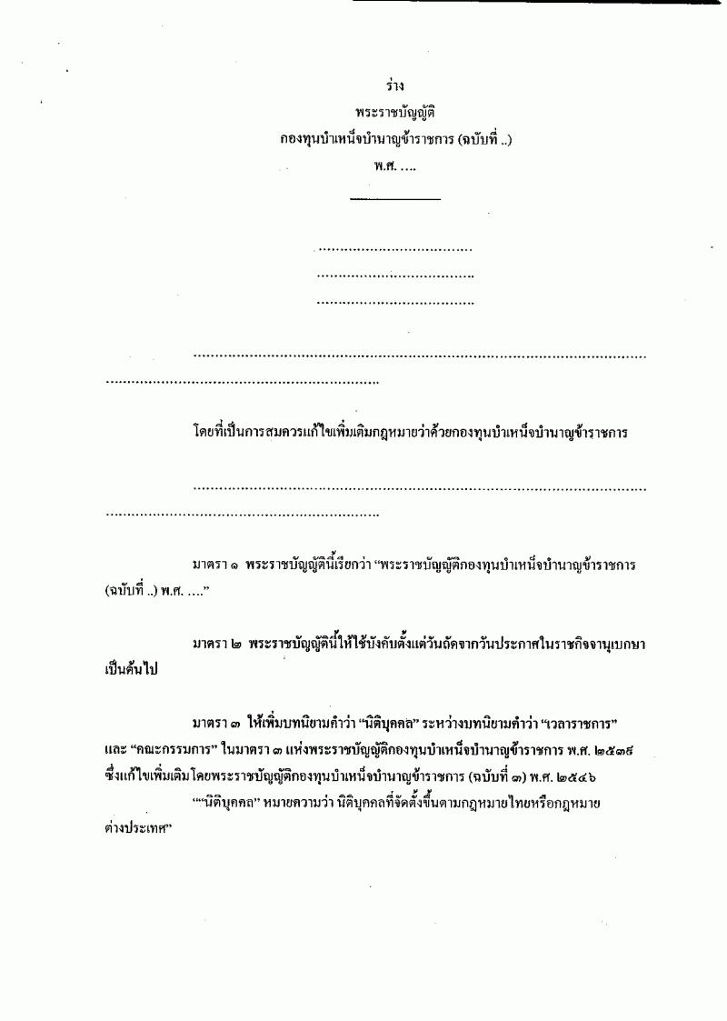 • ร่างพระราชบัญญัติกองทุนบำเหน็จบำนาญบำนาญข้าราชการ (ฉบับที่ ..) พ.ศ. ....