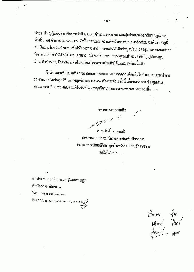 • ร่างพระราชบัญญัติกองทุนบำเหน็จบำนาญบำนาญข้าราชการ (ฉบับที่ ..) พ.ศ. ....