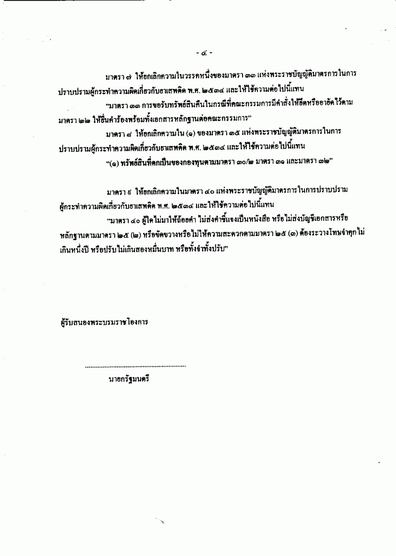 ชื่อเอกสาร :   ร่างพระราชบัญญัติมาตรการในการปราบปรามผู้กระทำความผิดเกี่ยวกับยาเสพติด