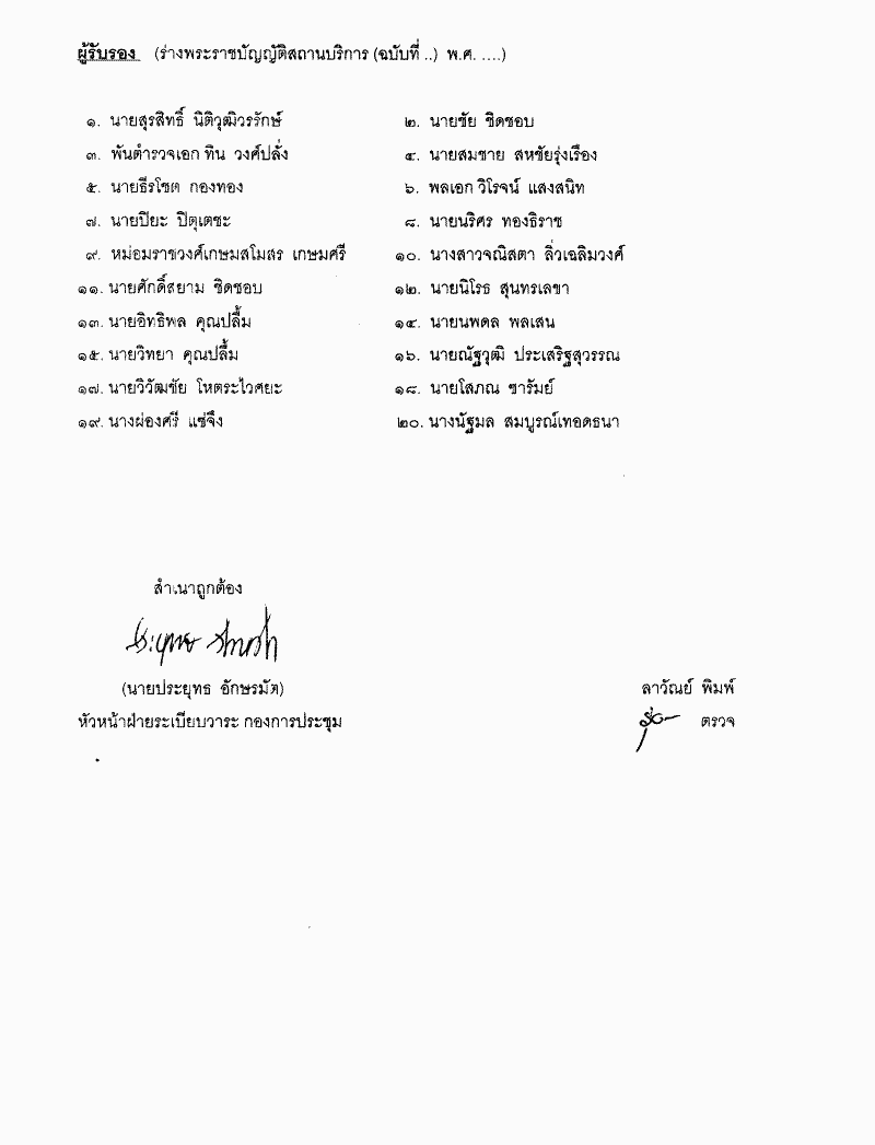• ร่างพระราชบัญญัติสถานบริการ (ฉบับที่ ..) พ.ศ. .... (พลตำรวจโท วิโรจน์ เปาอินทร์ และนายชูวงศ์ ฉายะบุตร เป็นผู้เสนอ)