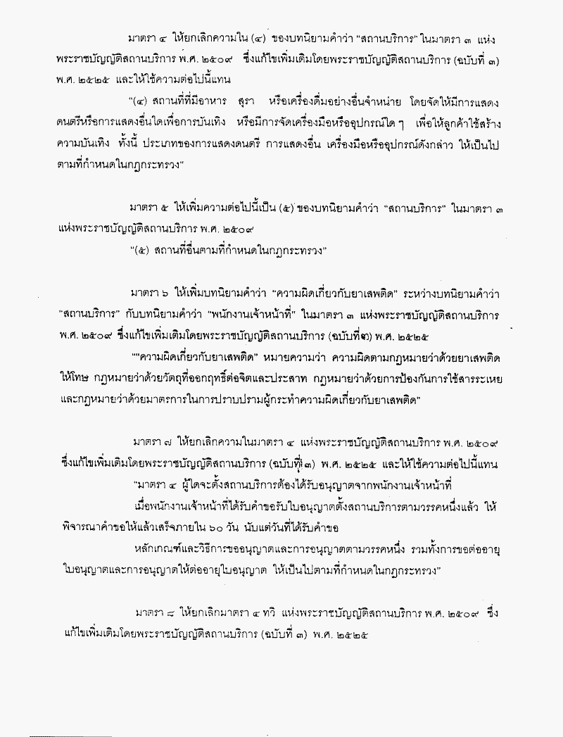 ชื่อเอกสาร :   ร่างพระราชบัญญัติสถานบริการ (ฉบับที่ ..) พ.ศ. .... (พลตำรวจโท วิโรจน์ เปาอินทร์ และนายชูวงศ์ ฉายะบุตร เป็นผู้เสนอ)