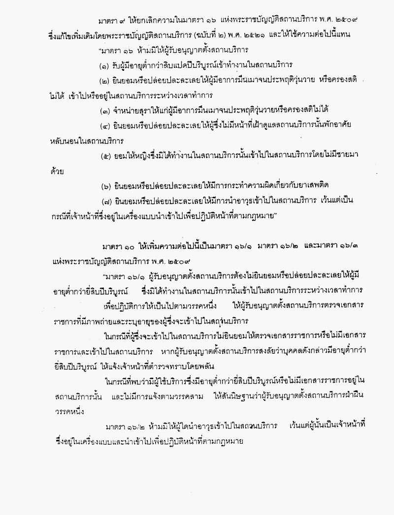 ชื่อเอกสาร :   ร่างพระราชบัญญัติสถานบริการ (ฉบับที่ ..) พ.ศ. .... (พลตำรวจโท วิโรจน์ เปาอินทร์ และนายชูวงศ์ ฉายะบุตร เป็นผู้เสนอ)
