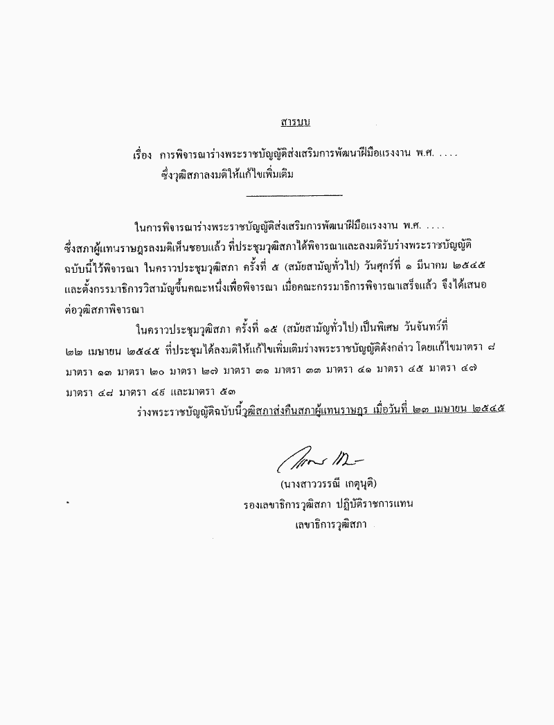 • ร่างพระราชบัญญัติส่งเสริมการพัฒนาฝีมือแรงงาน พ.ศ. ....