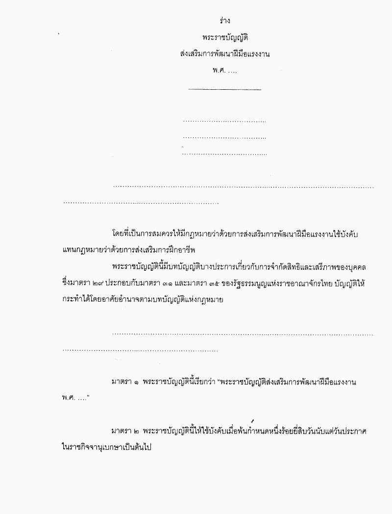 • ร่างพระราชบัญญัติส่งเสริมการพัฒนาฝีมือแรงงาน พ.ศ. ....
