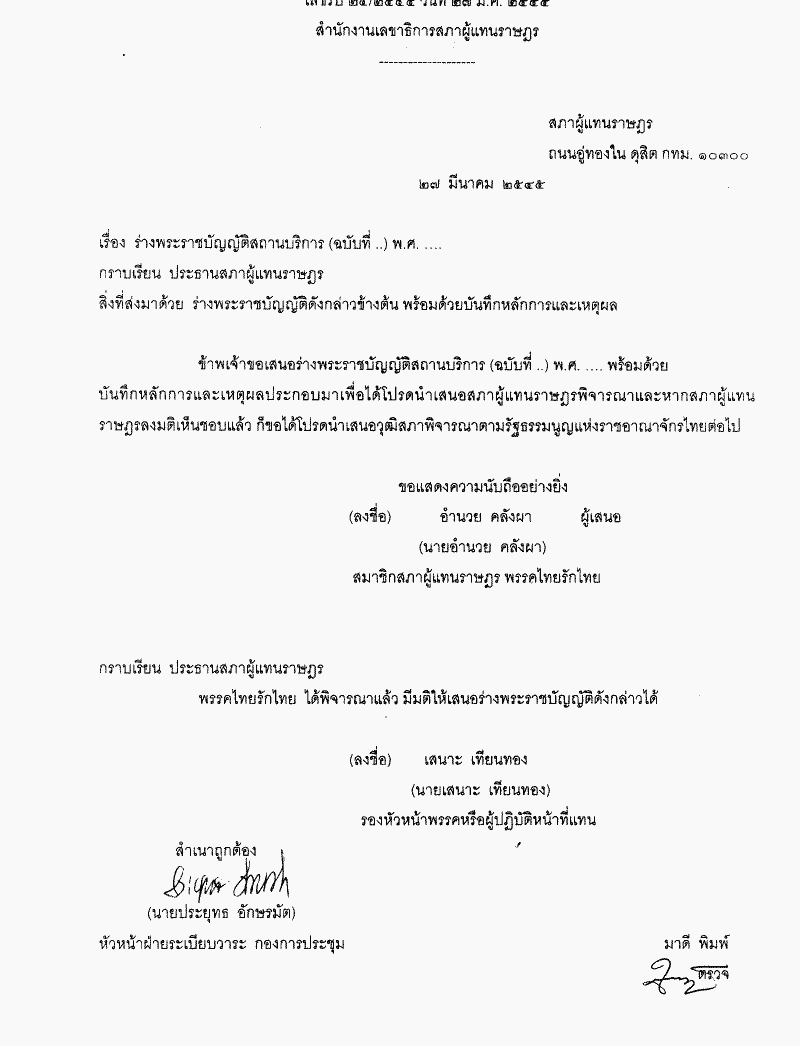 ชื่อเอกสาร :   ร่างพระราชบัญญัติสถานบริการ (ฉบับที่ ..) พ.ศ. .... (นายอำนวย คลังผา เป็นผู้เสนอ)