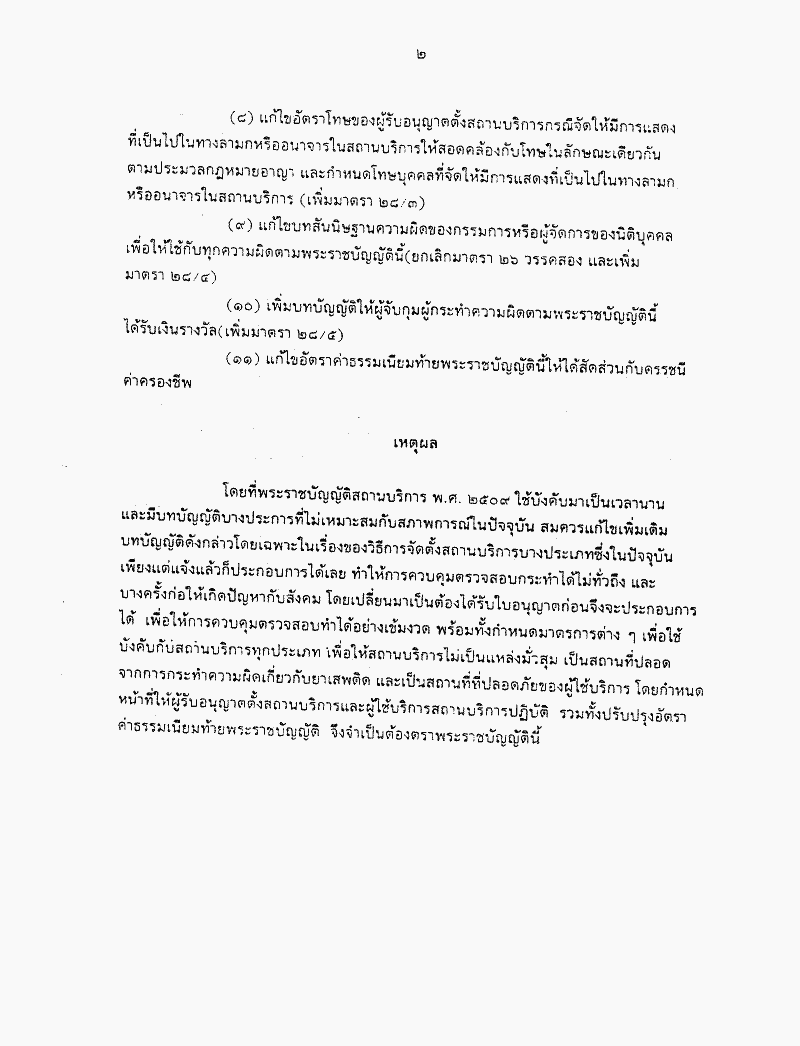 ชื่อเอกสาร : ร่างพระราชบัญญัติสถานบริการ (ฉบับที่ ..) พ.ศ. .... (นายอำนวย คลังผา เป็นผู้เสนอ)