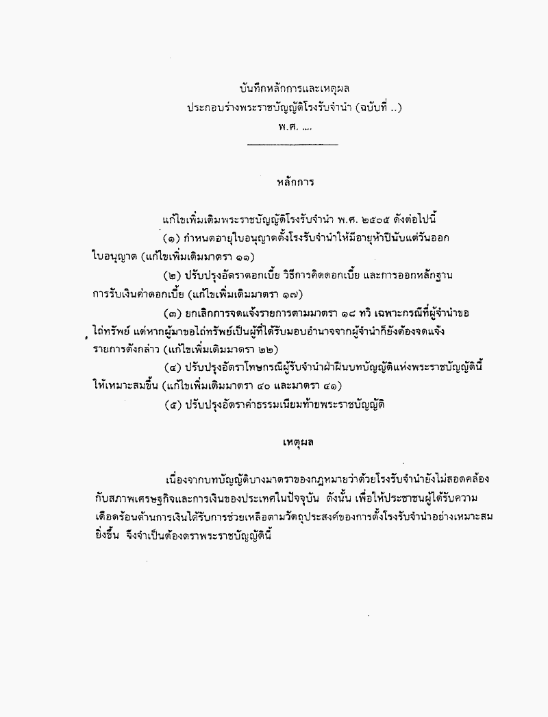 • ร่างพระราชบัญญัติโรงรับจำนำ (ฉบับที่ ..) พ.ศ. ....