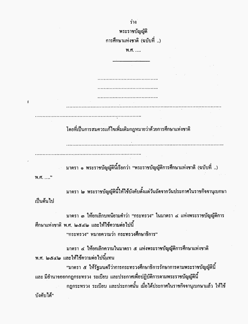 • ร่างพระราชบัญญัติการศึกษาแห่งชาติ (ฉบับที่ ..) พ.ศ. ....