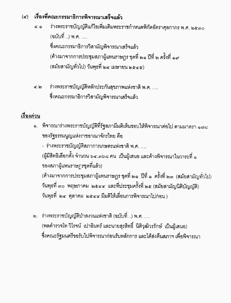 ชื่อเอกสาร : ระเบียบวาระการประชุมสภาผู้แทนราษฎร ชุดที่ 21 ปีที่ 2 ครั้งที่ 21 (สมัยสามัญทั่วไป) วันพุธที่ 1 พฤษภาคม 2545