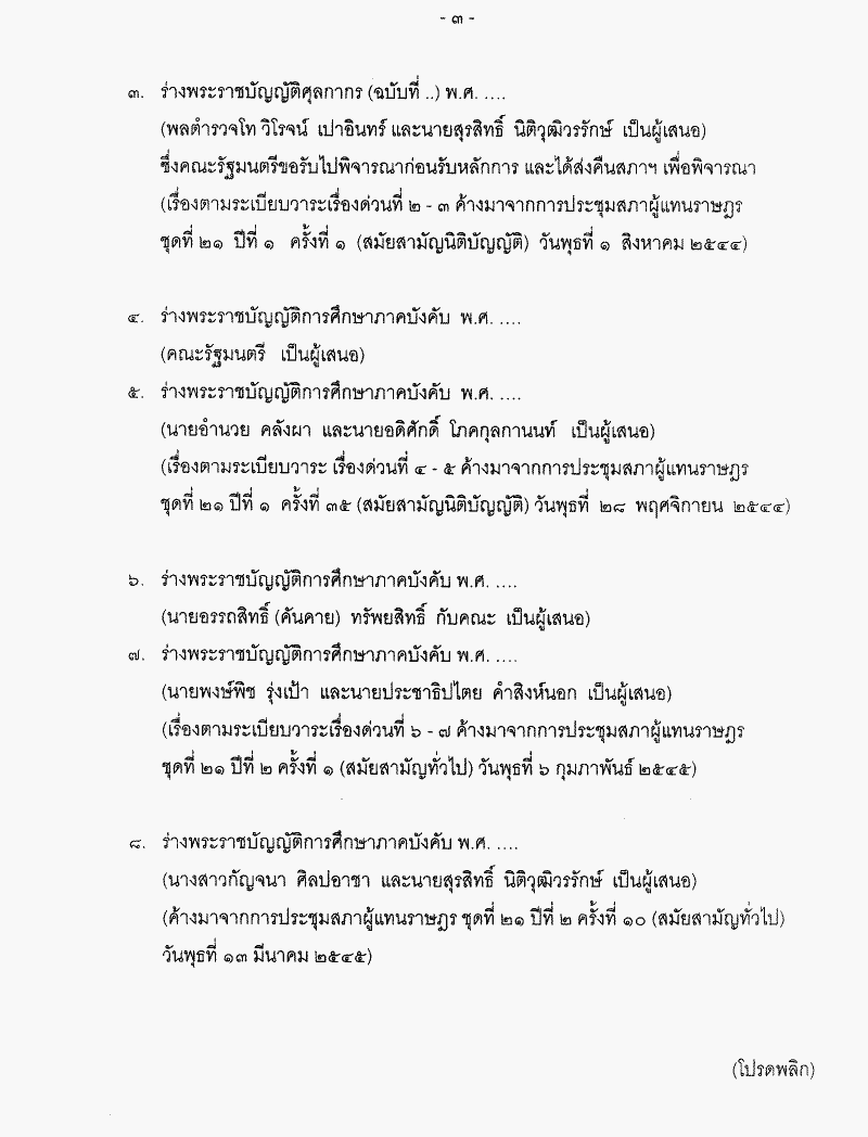 ชื่อเอกสาร : ระเบียบวาระการประชุมสภาผู้แทนราษฎร ชุดที่ 21 ปีที่ 2 ครั้งที่ 21 (สมัยสามัญทั่วไป) วันพุธที่ 1 พฤษภาคม 2545