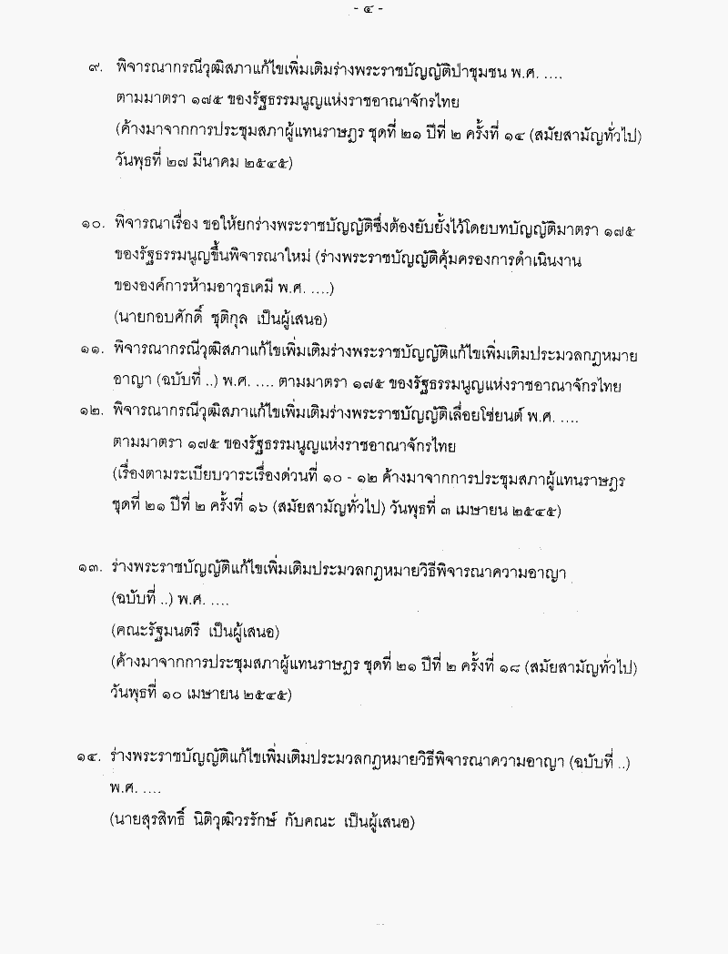 • ระเบียบวาระการประชุมสภาผู้แทนราษฎร ชุดที่ 21 ปีที่ 2 ครั้งที่ 21 (สมัยสามัญทั่วไป) วันพุธที่ 1 พฤษภาคม 2545