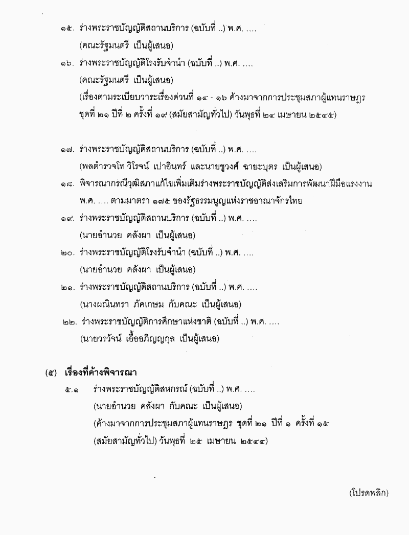 • ระเบียบวาระการประชุมสภาผู้แทนราษฎร ชุดที่ 21 ปีที่ 2 ครั้งที่ 21 (สมัยสามัญทั่วไป) วันพุธที่ 1 พฤษภาคม 2545