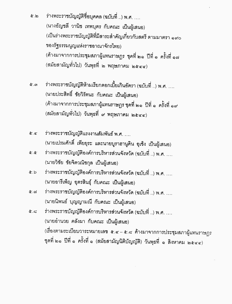 • ระเบียบวาระการประชุมสภาผู้แทนราษฎร ชุดที่ 21 ปีที่ 2 ครั้งที่ 21 (สมัยสามัญทั่วไป) วันพุธที่ 1 พฤษภาคม 2545