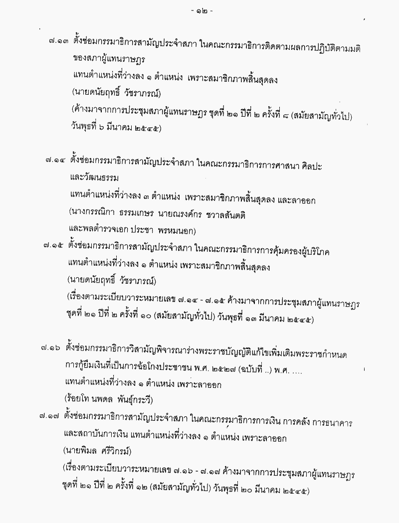 • ระเบียบวาระการประชุมสภาผู้แทนราษฎร > ชุดที่ 21 > ปีที่ 2 > สมัยสามัญทั่วไป > ครั้งที่ 21