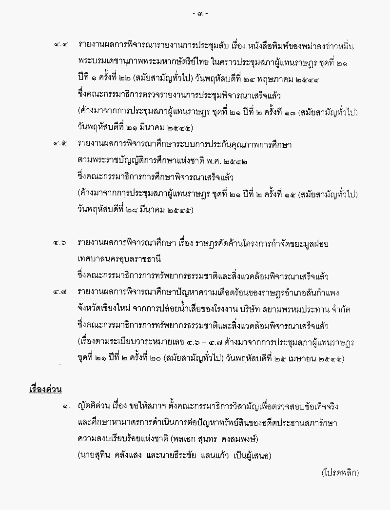 ระเบียบวาระการประชุมสภาผู้แทนราษฎร > ชุดที่ 21 > ปีที่ 2 > สมัยสามัญทั่วไป > ครั้งที่ 22