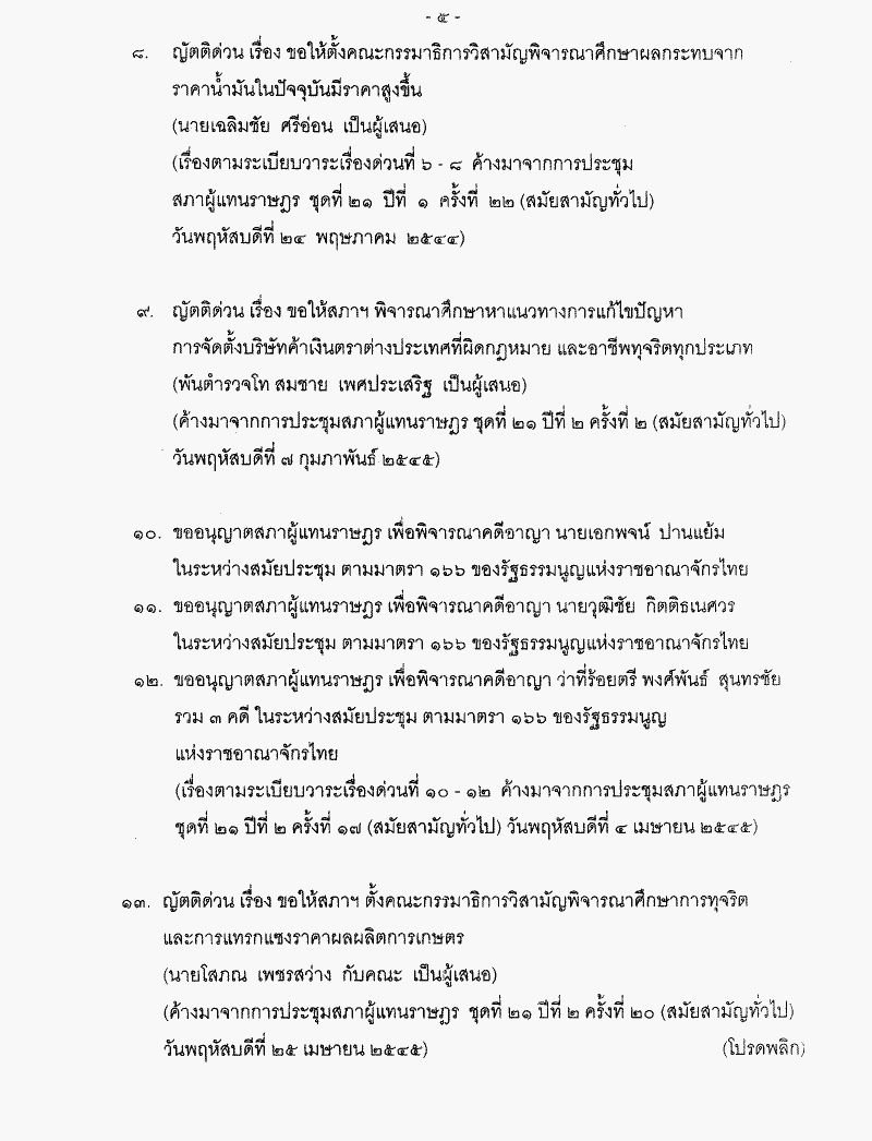 ระเบียบวาระการประชุมสภาผู้แทนราษฎร > ชุดที่ 21 > ปีที่ 2 > สมัยสามัญทั่วไป > ครั้งที่ 22