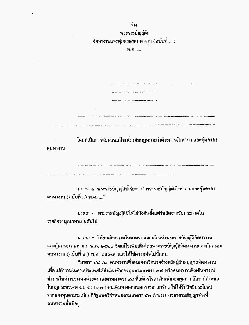 • ร่างพระราชบัญญัติจัดหางานและคุ้มครองคนหางาน (ฉบับที่ ..) พ.ศ. ....