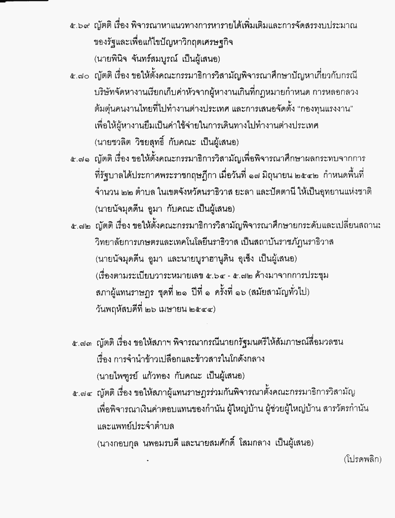 ระเบียบวาระการประชุมสภาผู้แทนราษฎร > ชุดที่ 21 > ปีที่ 2 > สมัยสามัญทั่วไป > ครั้งที่ 22