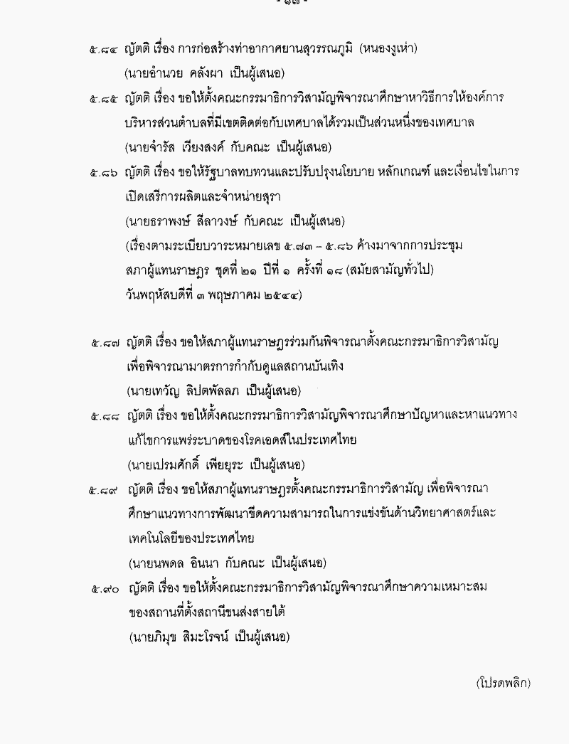 ระเบียบวาระการประชุมสภาผู้แทนราษฎร > ชุดที่ 21 > ปีที่ 2 > สมัยสามัญทั่วไป > ครั้งที่ 22