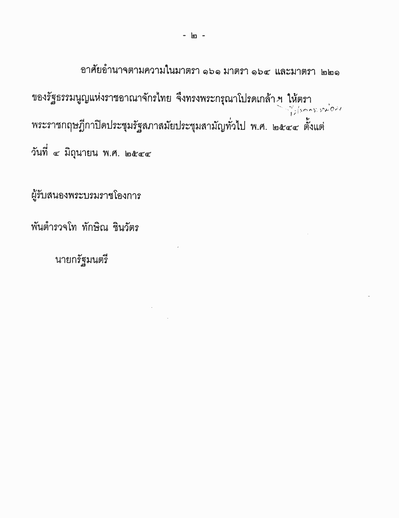 • พระราชกฤษฎีกา ปิดประชุมรัฐสภาสมัยประชุมสามัญทั่วไป พ.ศ. ๒๕๔๔
