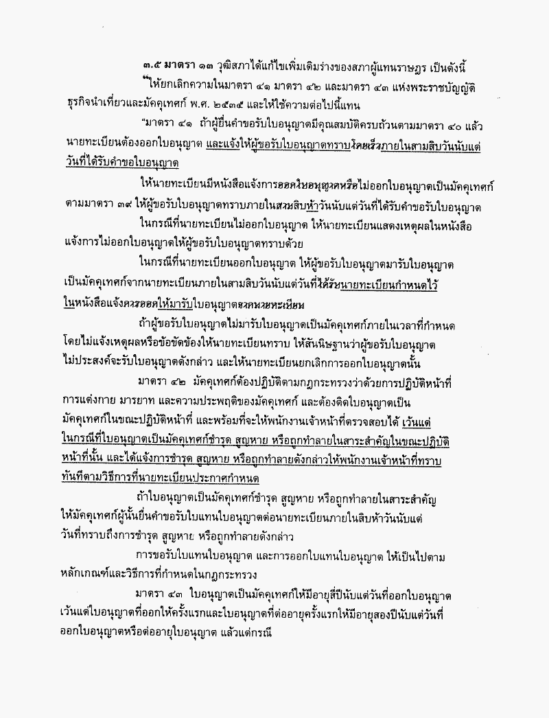 • ร่างพระราชบัญญัติธุรกิจนำเที่ยวและมัคคุเทศก์ (ฉบับที่ ..) พ.ศ. ....